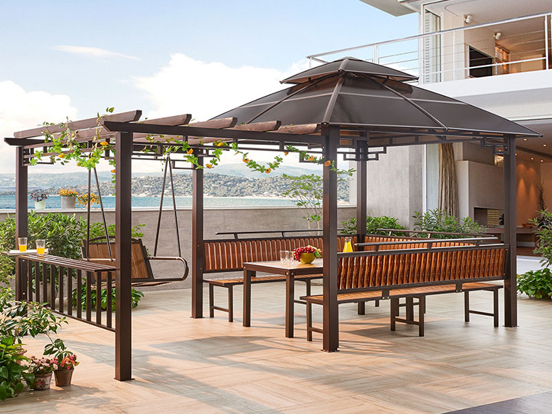 當前位置: 戶外庭院休閑遮陽篷帶桌椅 可安葡萄架秋千