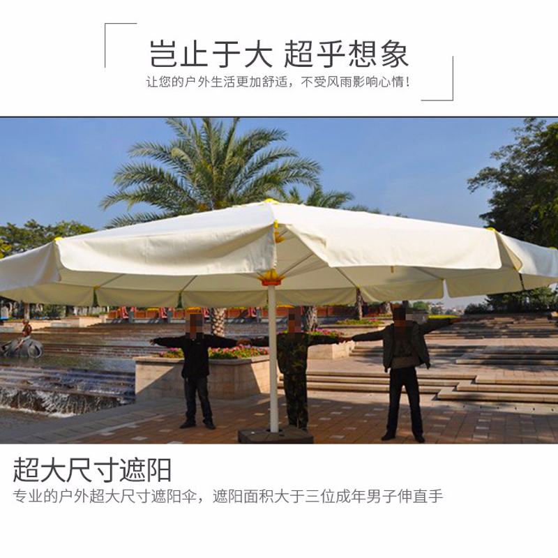 一、產品概述超大廣場庭院傘是專為室外空間設計的大型遮陽傘,能夠為您提供廣闊而有效的遮陽區域,適用于廣場、庭院、泳池邊等大型戶外場所。